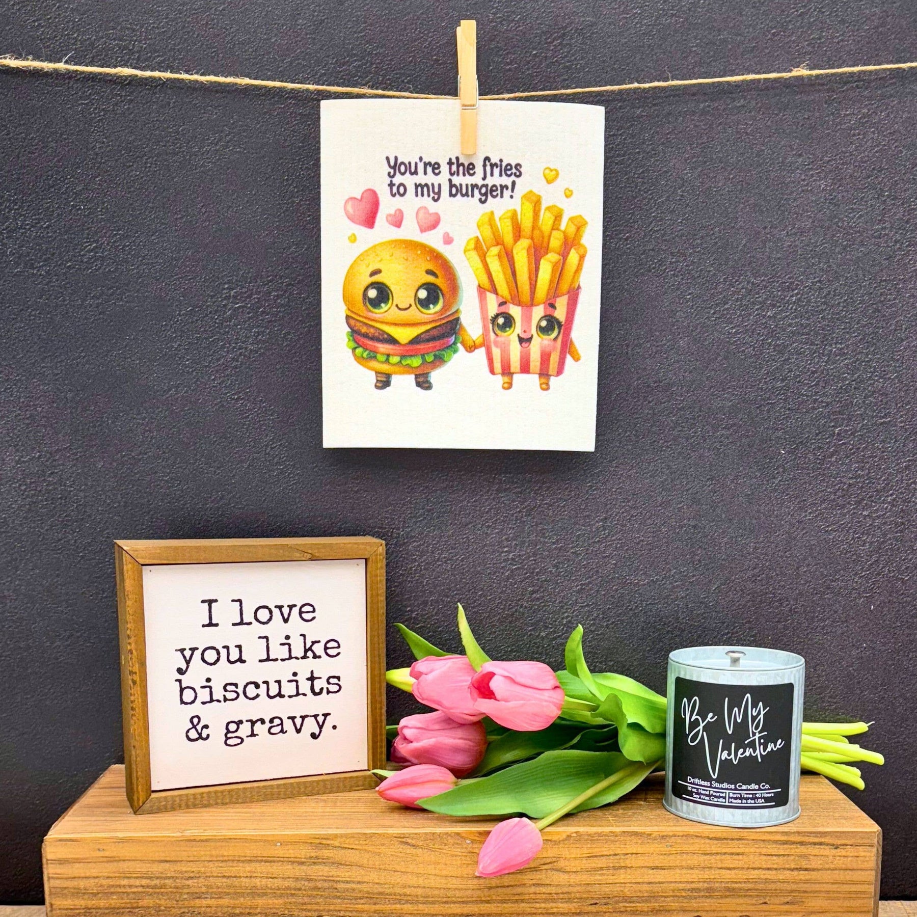 Burger & Fries Cartoon Swedish Dishcloth - Valentines Day
