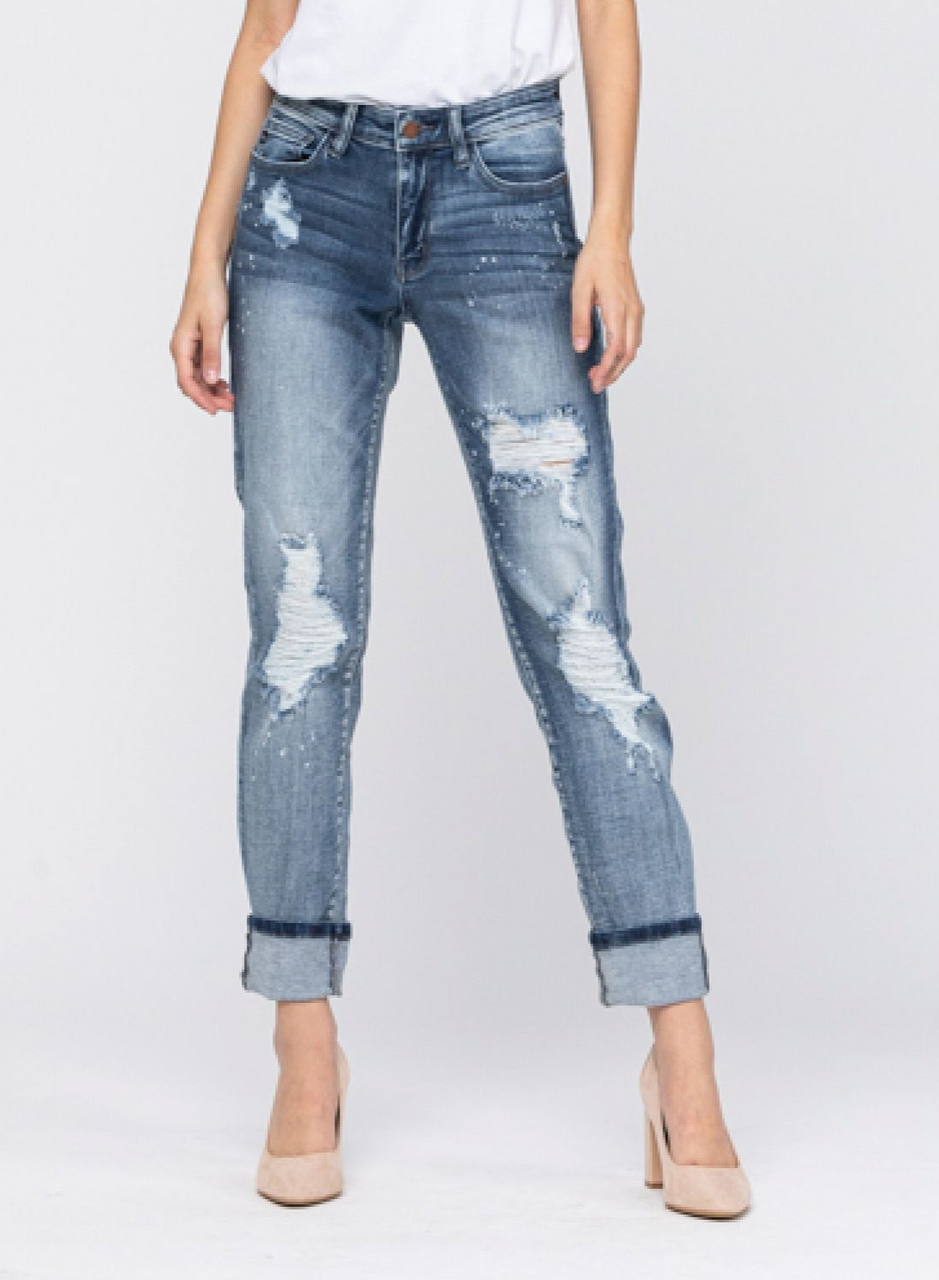 Judy Blue Mid Rise Bleach Wash Cuffed Boyfriend Denim - Plus Size