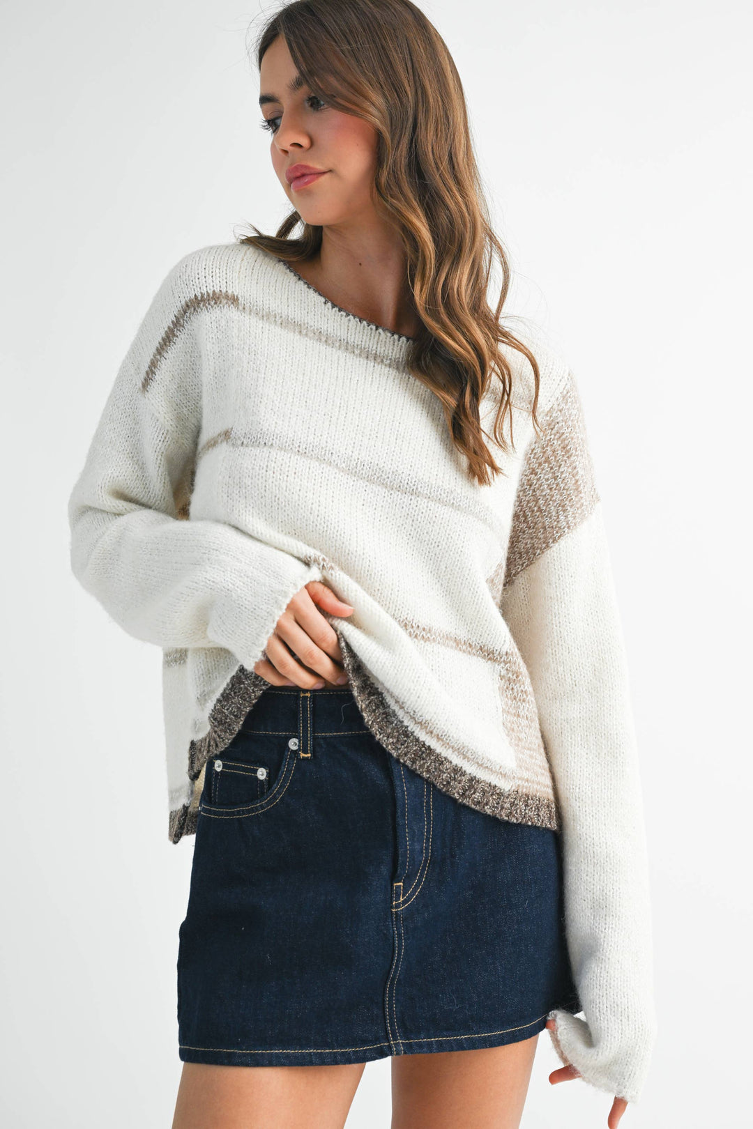 Mona Knit Stripe Pullover Sweater - White/Oat