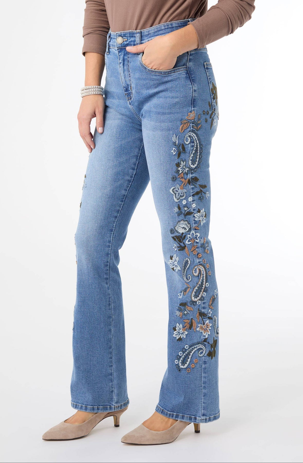 EverStretch Baby Bootcut Jeans with Side Embroidery - Medium Wash