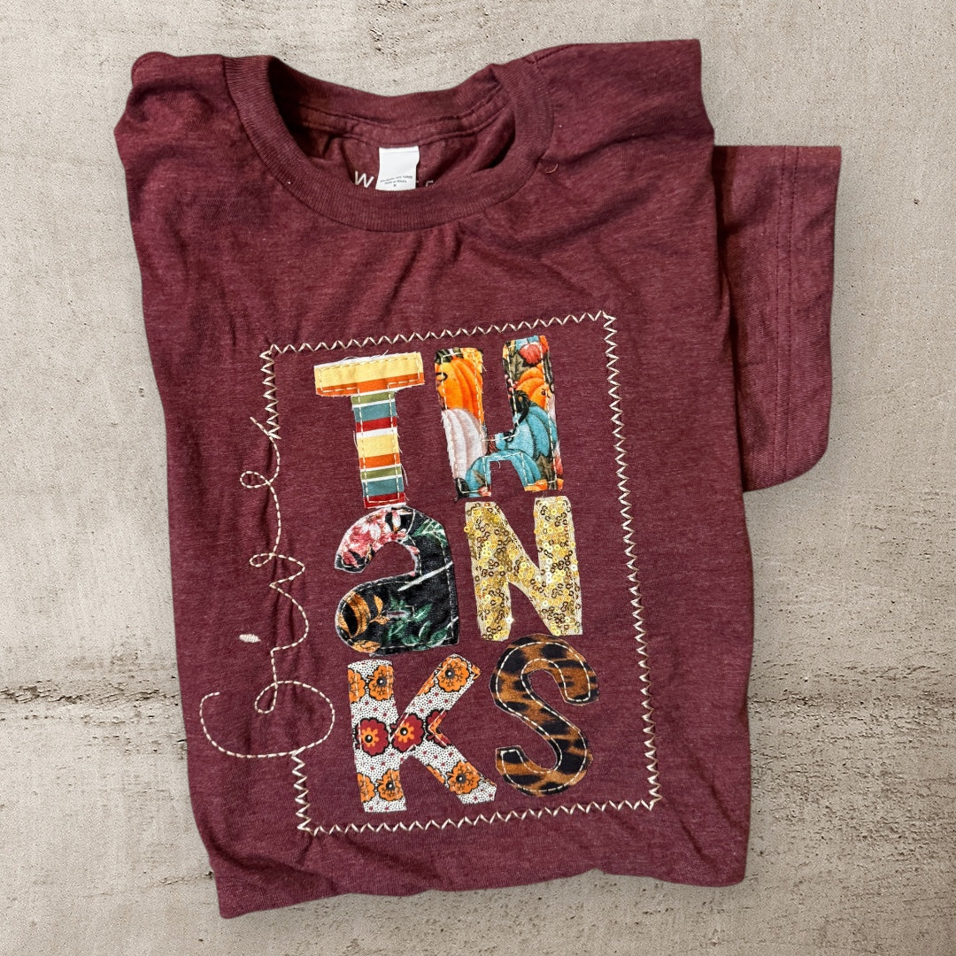 Celebrate gratitude in style with the Give Thanks Tee, a cozy favorite crafted by hand just for you. Available in sizes S through 3X, this tee combines a premium cotton blend for softness and comfort all day long. Each shirt is carefully made by our skilled team in Kentucky, ensuring quality and care in every stitch. The playful heather maroon color adds a warm, festive touch perfect for fall gatherings or casual days. Wear your thanks loud and proud with a tee that’s as thoughtful as the season itself. Applique Design Handmade in the USA!