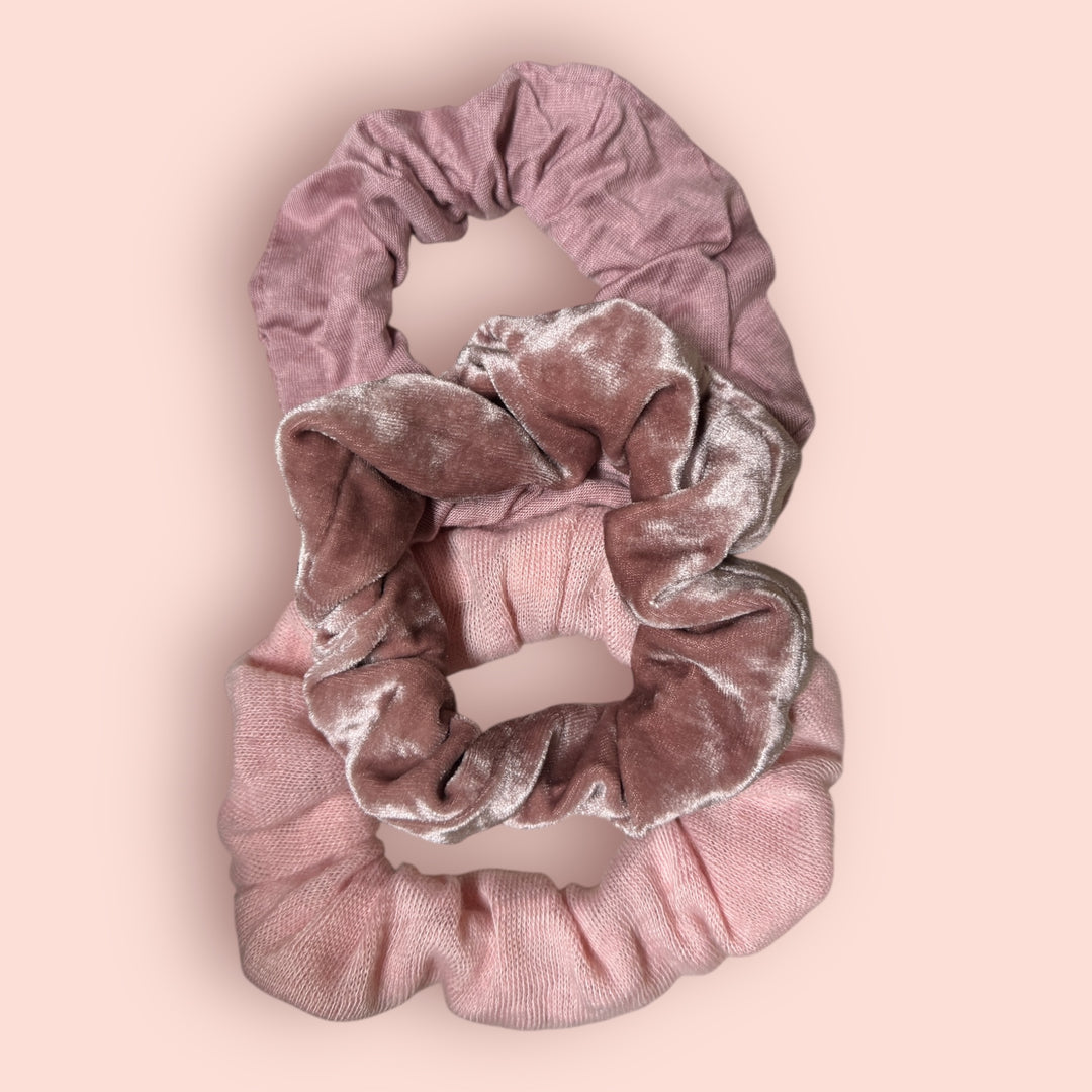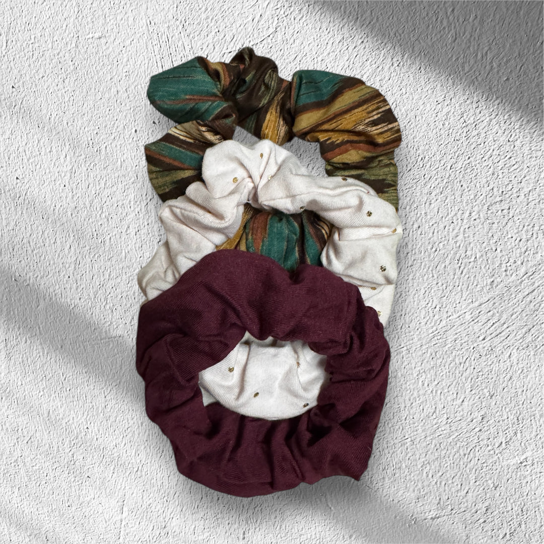 Floral Fun - Floral, maroon, lt. blue Scrunchies - 3pk
