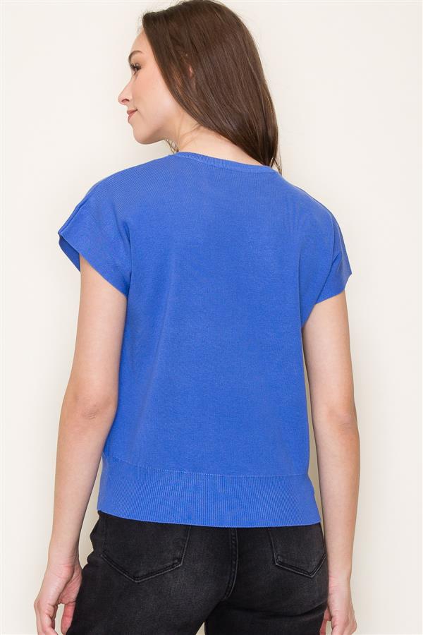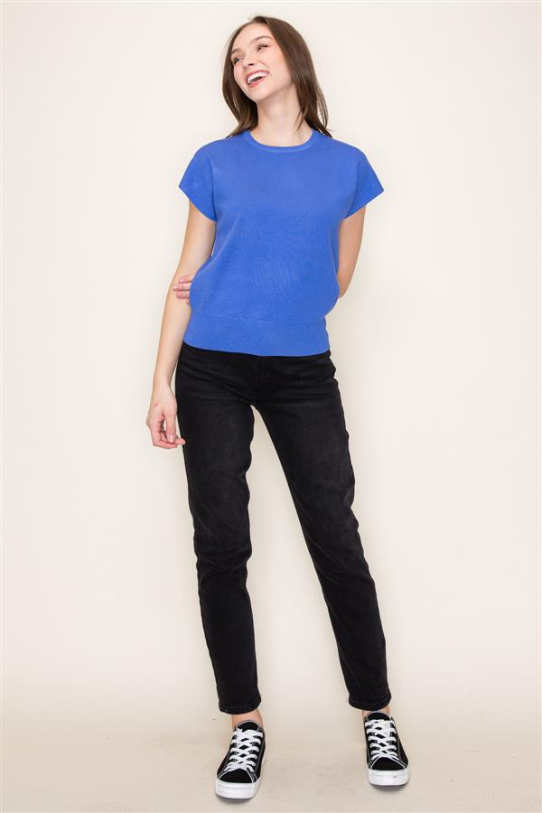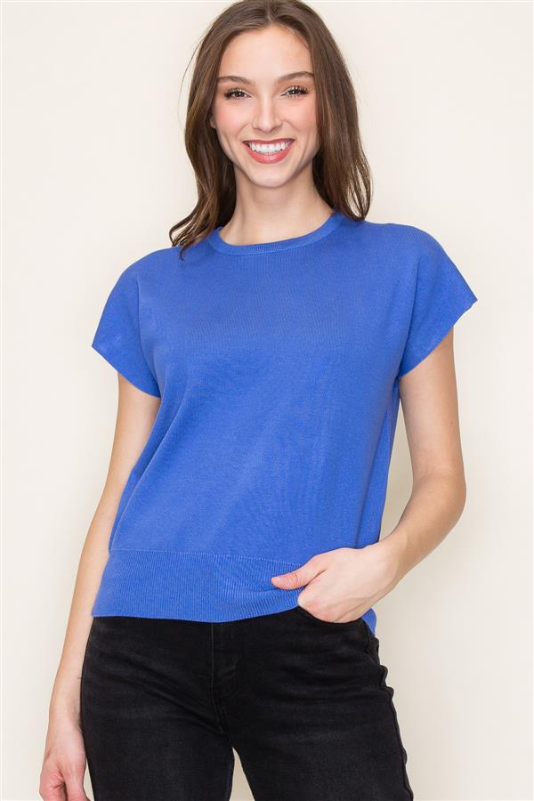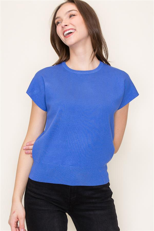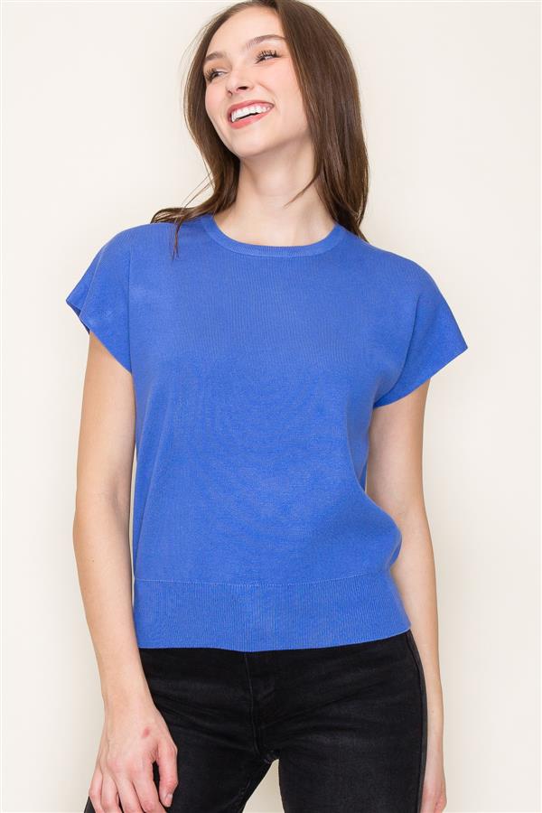 Crewneck Short Sleeve Sweater - Cobalt