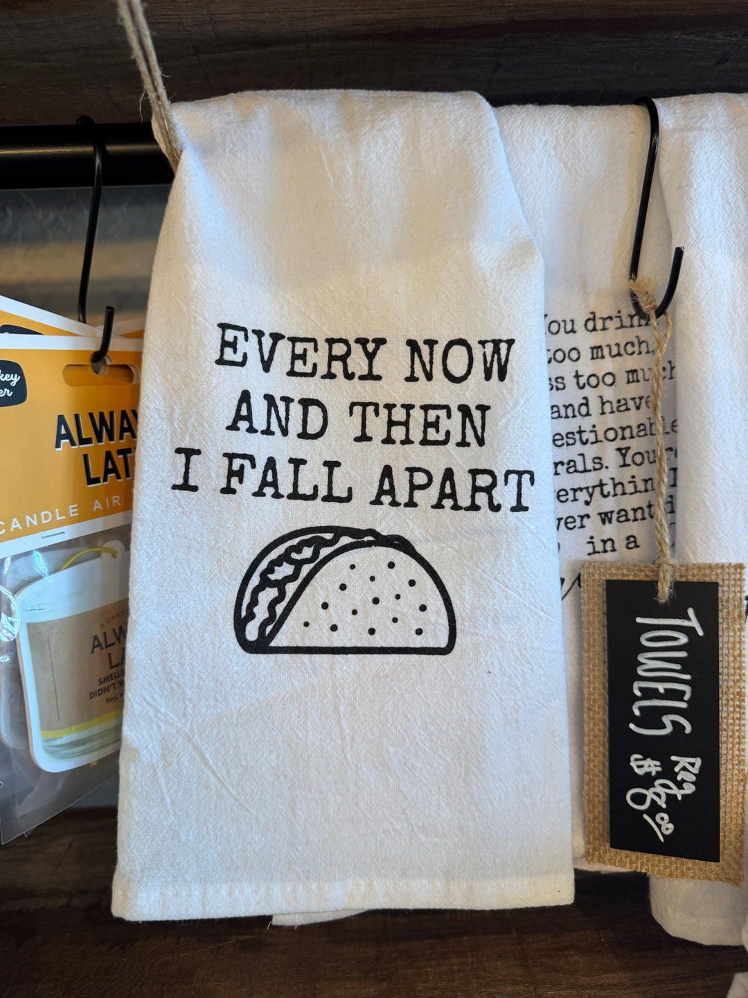 Every now and then I fall Apart (taco) Cotton Hand Tea Towel 16x24