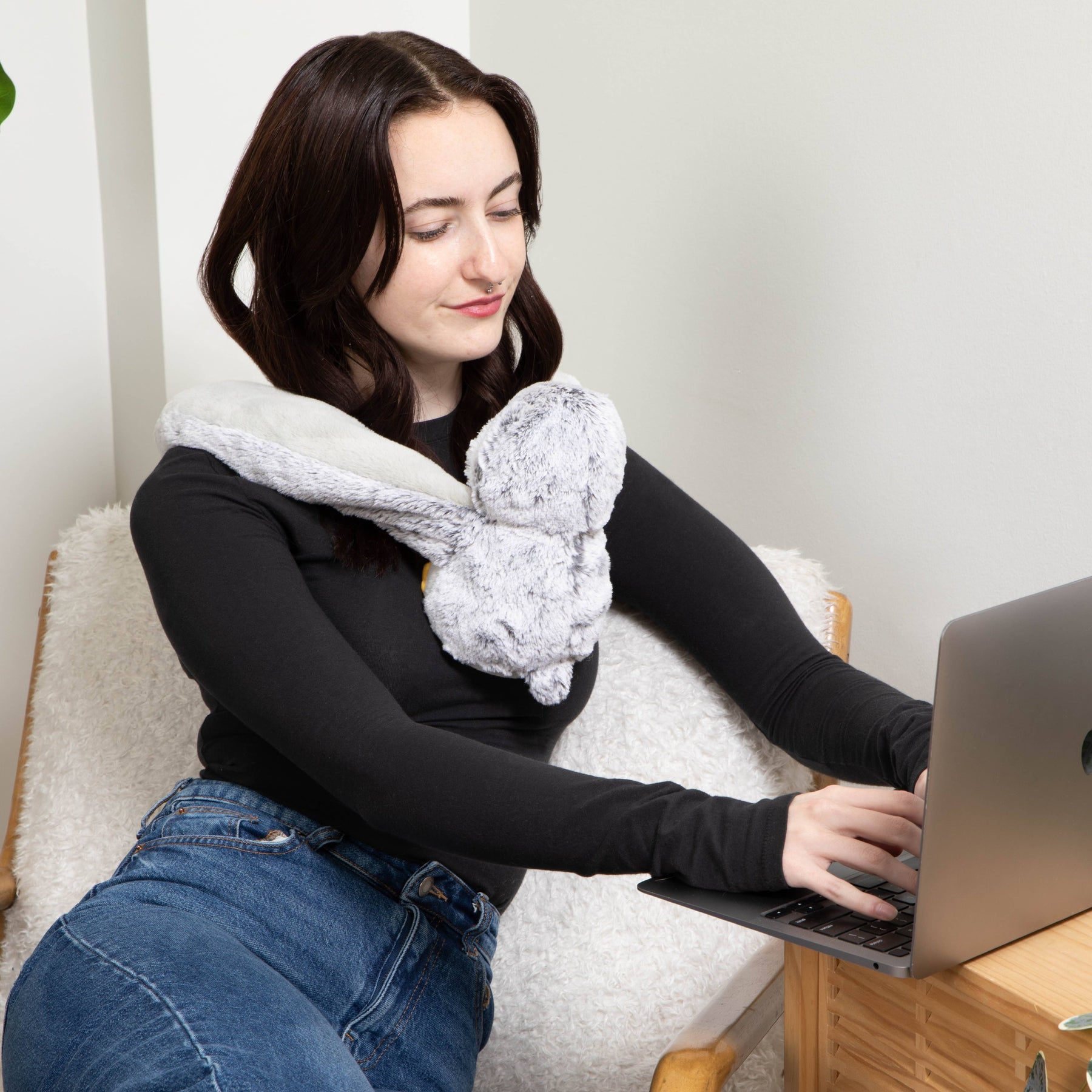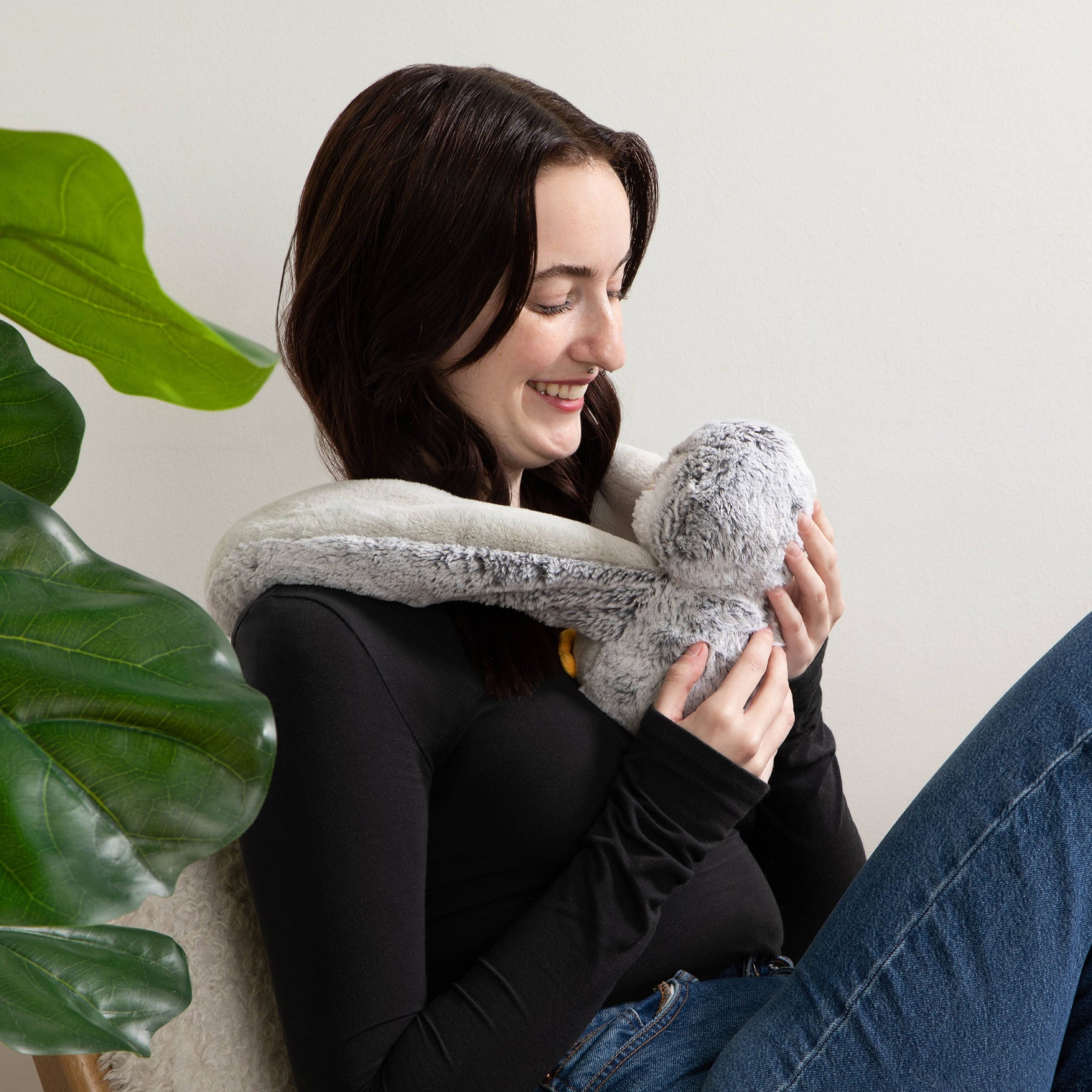 Weighted & warmable in the microwave, these lovable plushies have long, comforting arms that give cozy, wraparound hugs. Plus, their clay beads are mold-resistant and safe!* Features: • Warmable in the microwave for soothing warmth, and freezable for cooling comfort • Clay beads inside (mold-resistant and safe!)* • 2.5 pounds of Deep Touch Pressure for calming, anxiety-relieving hugs • Long, comforting weighted arms or wings for hands-free hugs that stay even when you move! • Small and portable: take your Hugaround wherever you go! • Created with Occupational Therapists for maximum sensory benefits • High-quality, soft, and non-allergenic materials. • Age 2+ MAP $45.00