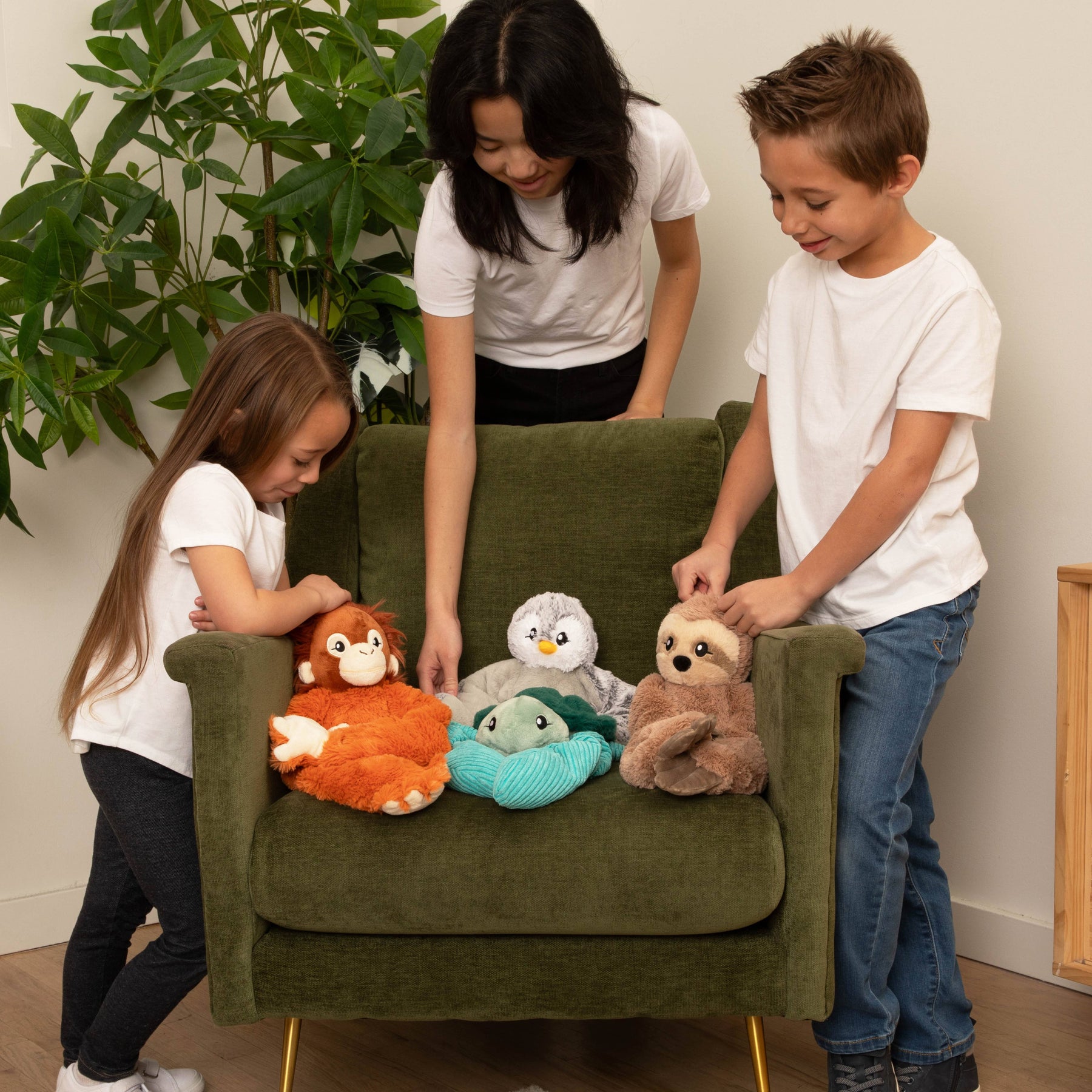Weighted & warmable in the microwave, these lovable plushies have long, comforting arms that give cozy, wraparound hugs. Plus, their clay beads are mold-resistant and safe!* Features: • Warmable in the microwave for soothing warmth, and freezable for cooling comfort • Clay beads inside (mold-resistant and safe!)* • 2.5 pounds of Deep Touch Pressure for calming, anxiety-relieving hugs • Long, comforting weighted arms or wings for hands-free hugs that stay even when you move! • Small and portable: take your Hugaround wherever you go! • Created with Occupational Therapists for maximum sensory benefits • High-quality, soft, and non-allergenic materials. • Age 2+ MAP $45.00