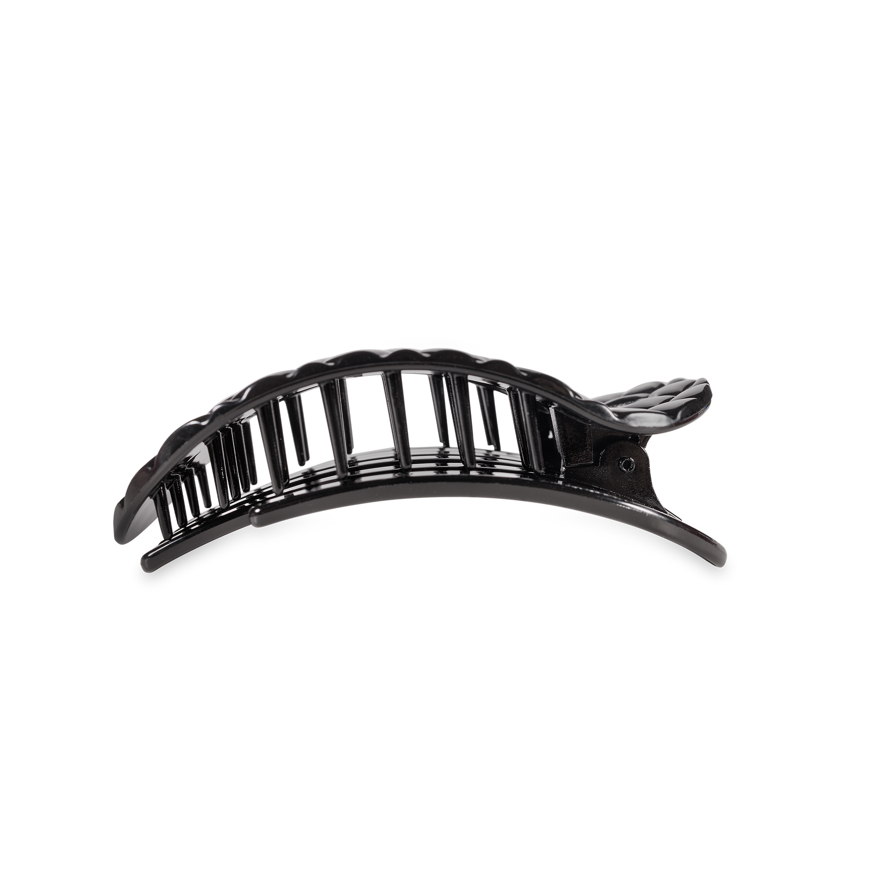 Lay flat and relax with the new TELETIES Jet Black Quilted Medium Flat Round Hair Clip in Black. This hair clip is designed to allow you to lay back flat, do yoga, or sit comfortably in a seat with a headrest, and it is made with the same material that is nearly unbreakable. Lay down flat with comfort Bendable teeth for a secure yet gentle hold Lightweight, durable, and suitable for all hair types Perfect for all-day wear—from sunup to sundown The medium size is 3.75 inches long.