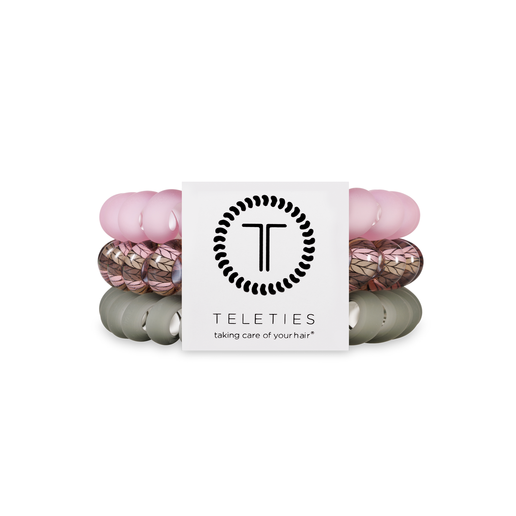Sage it Ain't So Large Hair Ties in Pink and Sage offer a strong grip without damage, doubling as a chic wrist accessory when not in use. Your new favorite hair essentials all year round. Strong grip, no rip design for all-day hold Doubles as a stylish bracelet Durable and waterproof for all occasions Gentle on hair—prevents breakage, headaches, and creases Sold in packs of three.