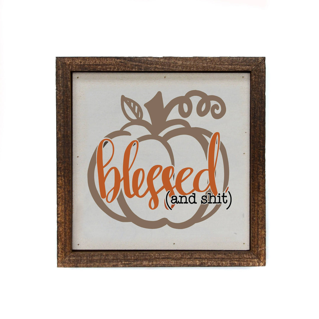 6x6 Blessed and Shit Pumpkin Fall Home Decor