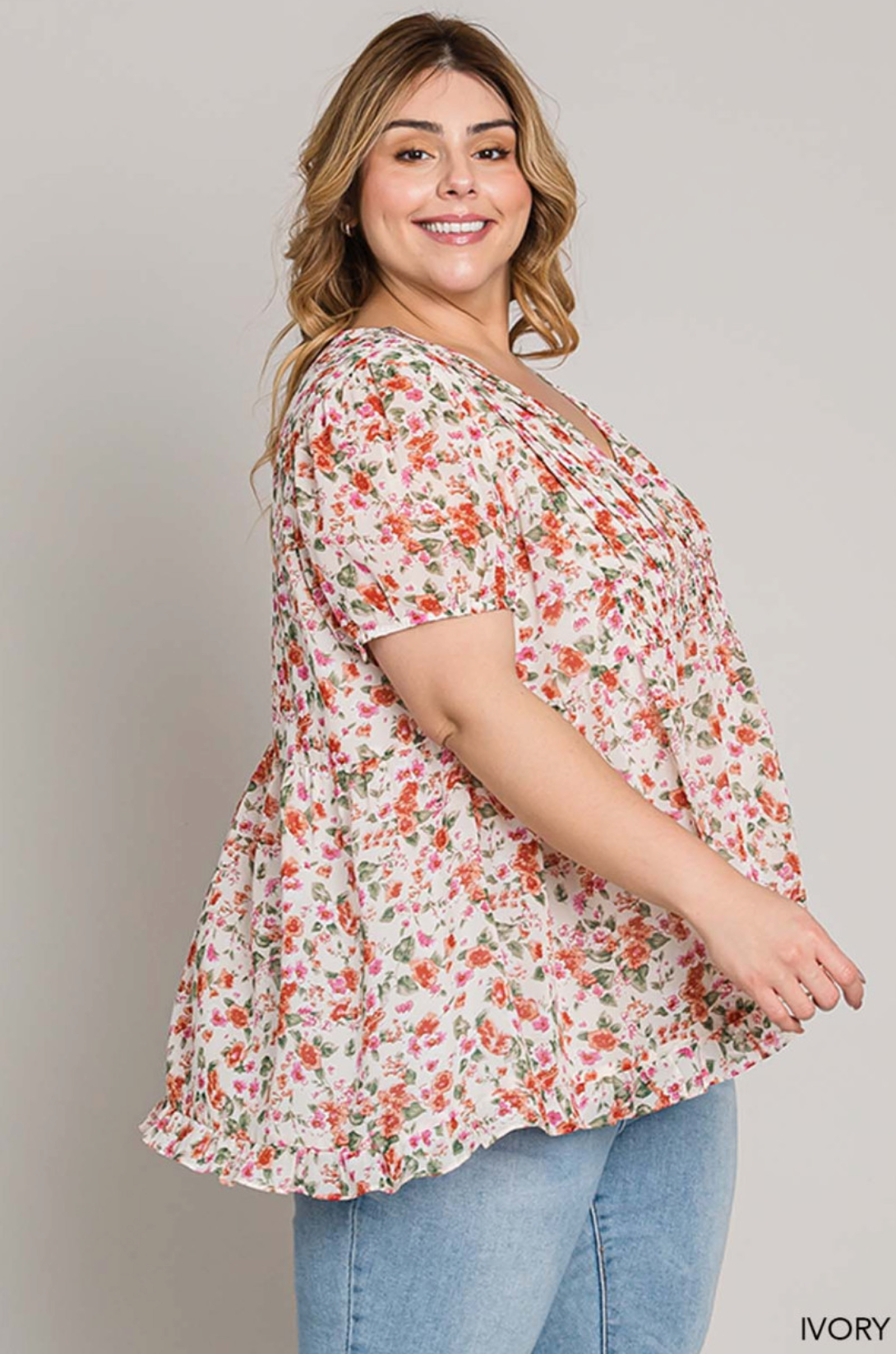 This floral blouse features charming smocking and faux buttons for a dressed-up look! Fully lined to keep things modest and vibrant. Made from 100% polyester for easy wear and care.