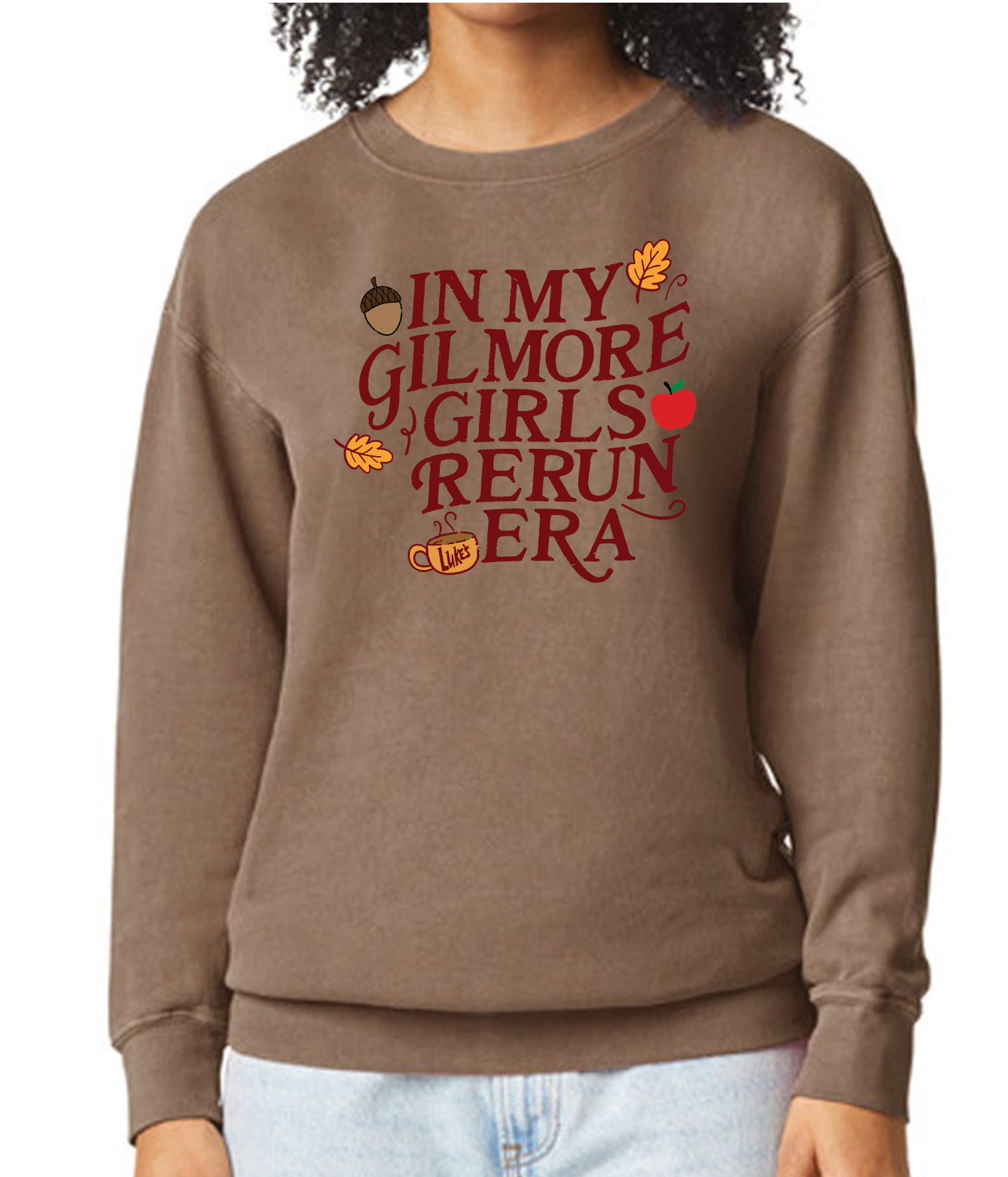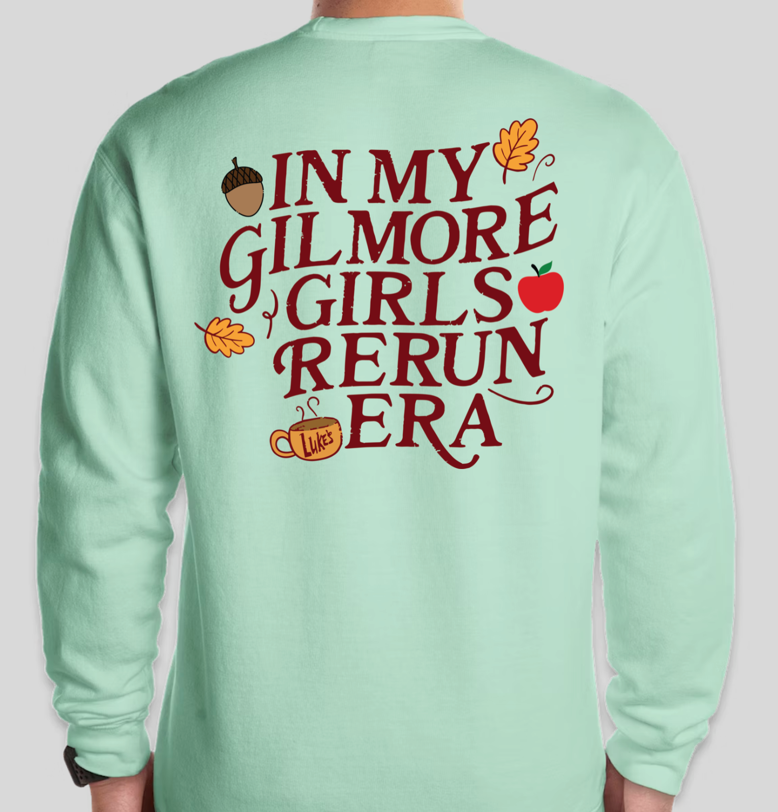 Channel your inner Lorelai and Rory with the ultimate cozy-season sweatshirt! This Comfort Colors brand pullover pays tribute to the small-town charm of Stars Hollow with optional front “Luke’s” coffee cup logo and a back print that proudly declares “In My Gilmore Girls Rerun Era.” Want the design on the front only? No problem! Select your options in the drop downs before adding to cart!