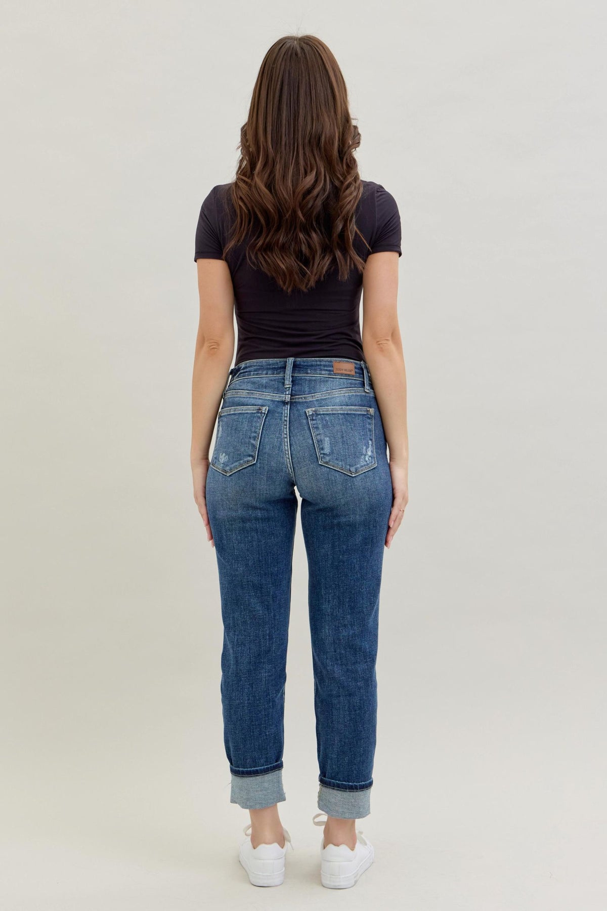 Judy Blue Midrise Cuffed/Uncuffed Destroy Boyfriend Jeans