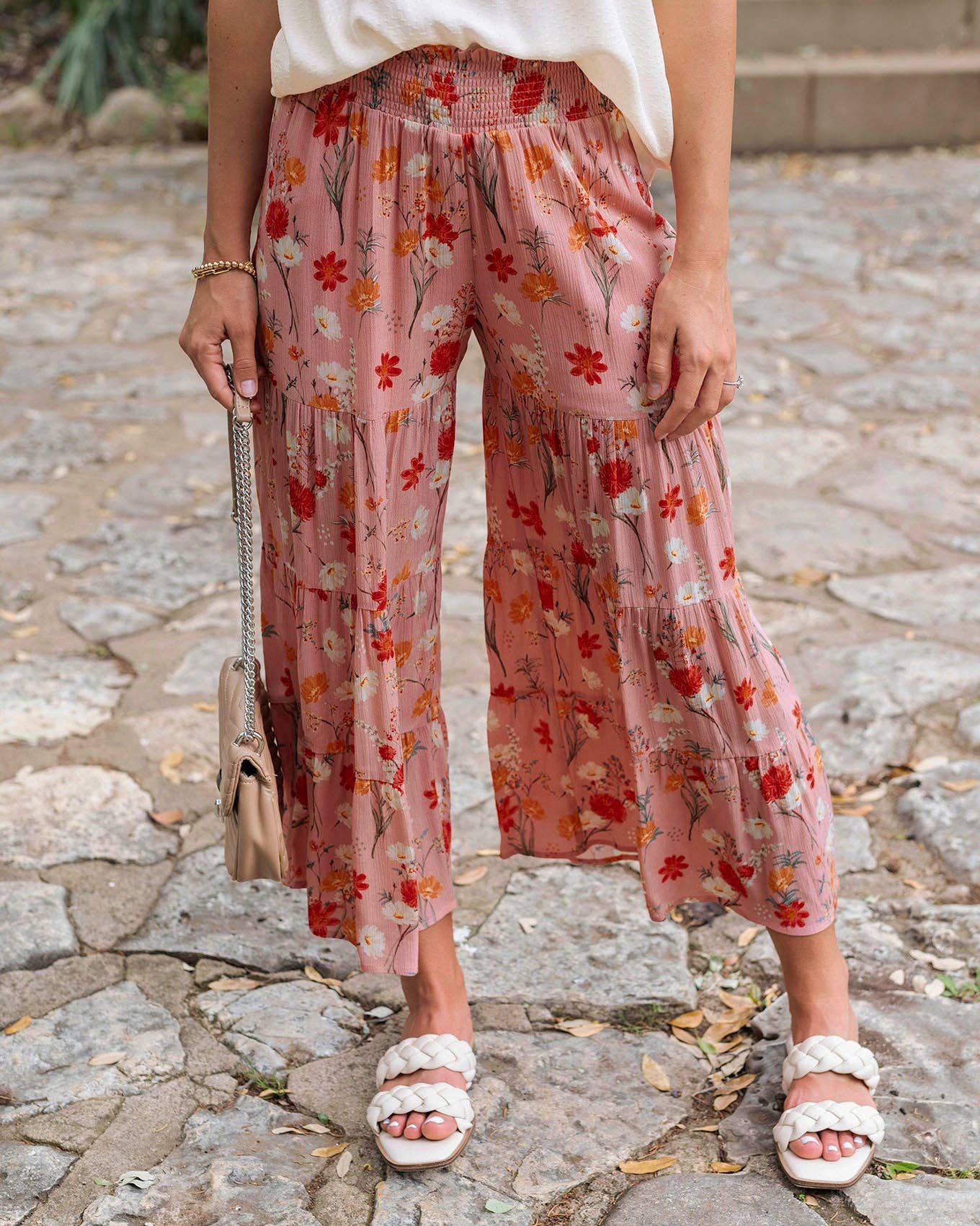 Retail Price: $51.00 Canadian MSRP: $75.74 Pink Floral Ankle Length Maxi Skirt/Pant | Pink Flowy Pants Breezy and elegant, our popular Maxi Skirt/Pant is back in a new ankle length and summer-ready pink floral print! With a flattering smocked waistband and tiered, flowy fabric, we’re giving you all the comfort of a flowy pant with the versatile elegance of a maxi skirt. Pair this skirt/pant with your favorite tank for a show-stopping summer look; or wear it beach- or poolside as a head-turning swim cover-up! Why you’ll love it: * Floral tiered maxi skirt/pant with smocked waistband * Comfortable stretch waistline and flowy tiered fabric make the perfect blend of fashion and comfort * Ankle length design and lightweight material with shorts lining * Style with a cami or tank for an effortless summer look, or wear it as a gorgeous swim cover up!