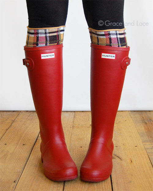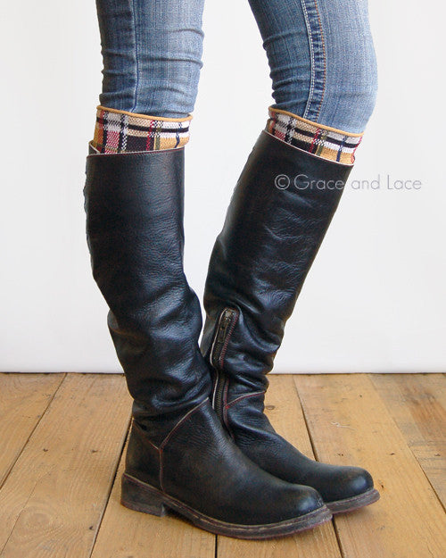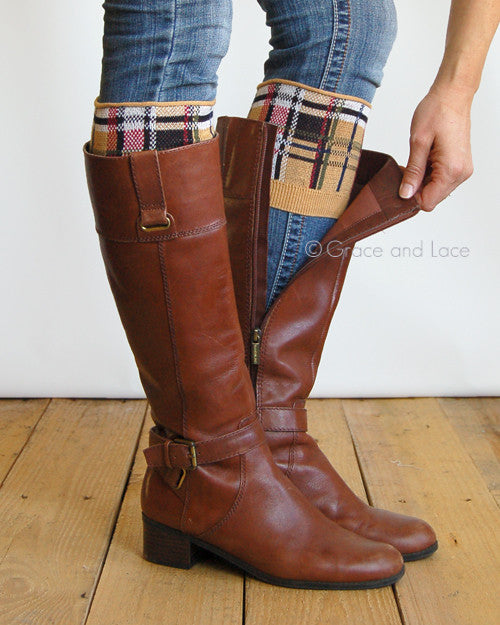Grace and Lace Patterned Boot Cuffs - Plaid (tan)
