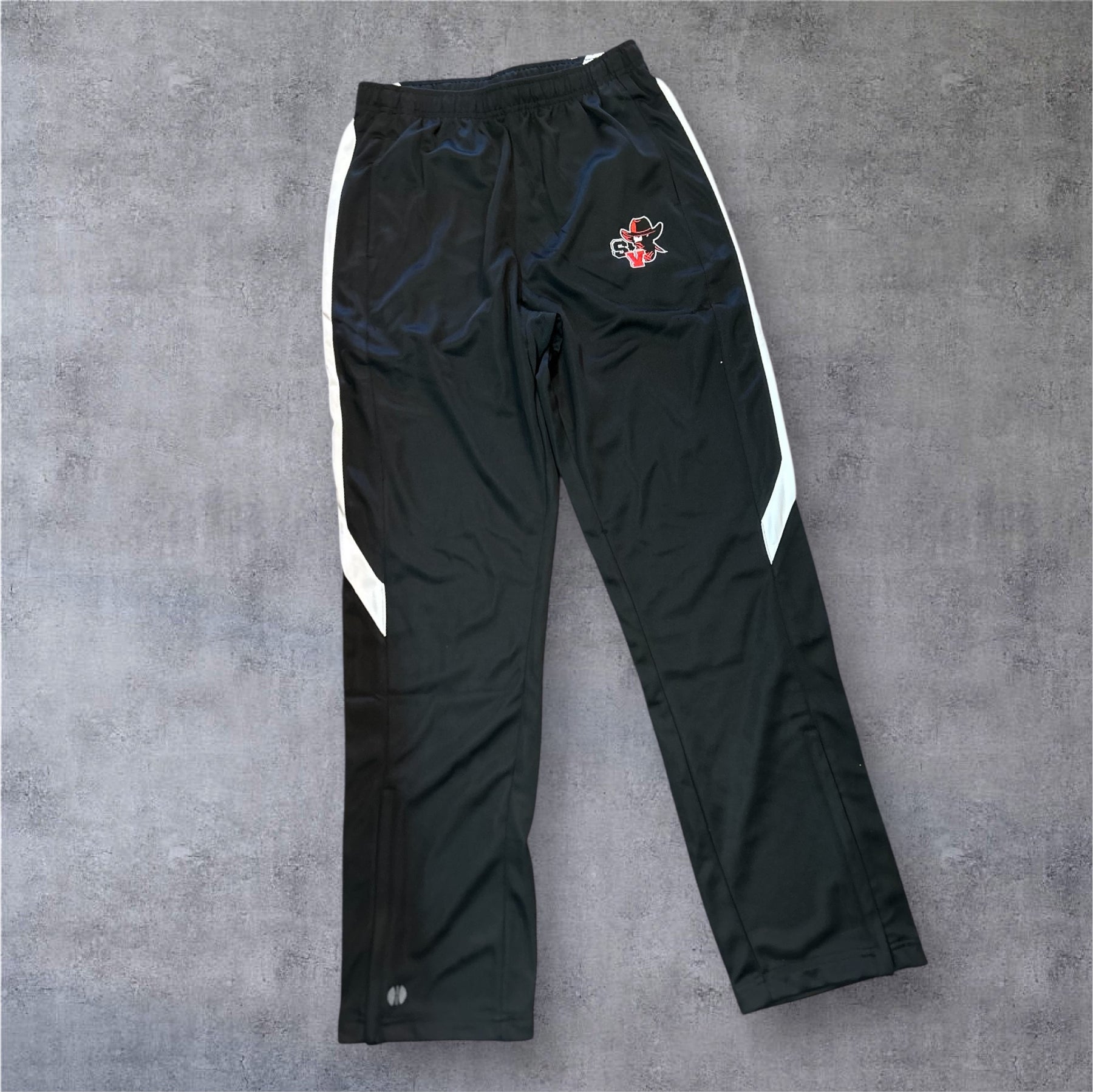 • Holloway Youth Pant 100% poly, slit pockets and zipper on bottom of legs. (YXL-Could fit an adult small)